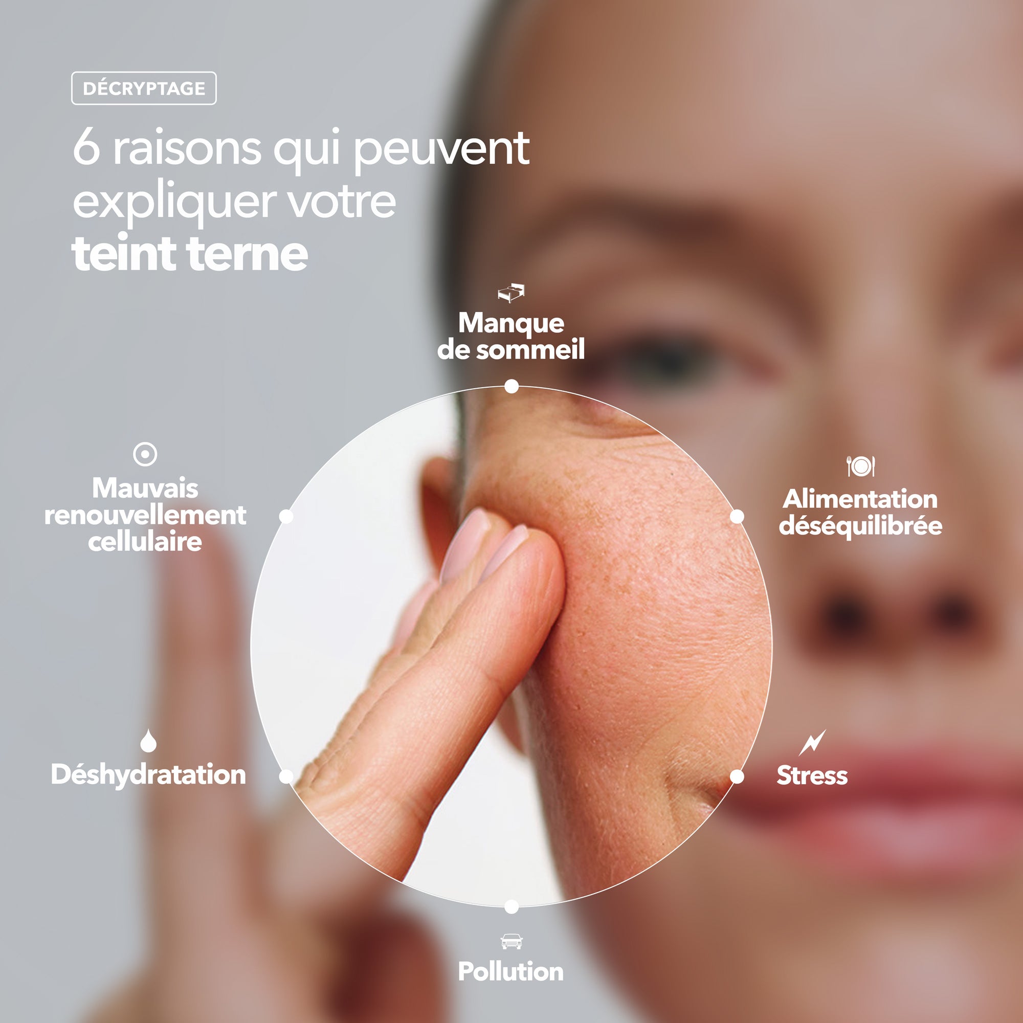 Comment retrouver l'éclat d'une peau saine et dire adieu à la grise mine ? Plusieurs facteurs peuvent griser le teint : une peau sèche qui ne se renouvelle pas assez vite, des pores obstrués, des particules de pollution qui s'accumulent ou tout simplement le manque de synthèse de vitamine D. Quelques conseils ci-dessous !
