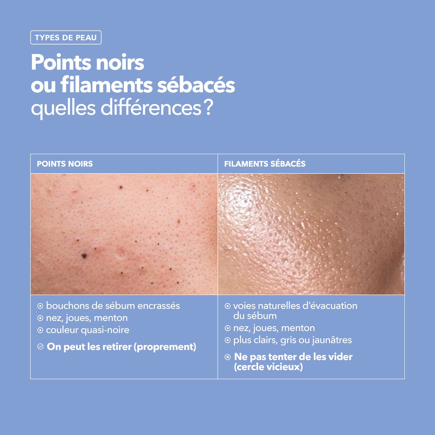 Lorsque les glandes sébacées produisent du sébum en excès, les pores se dilatent, les impuretés et cellules mortes viennent s'y nicher, les points noirs apparaissent et les brillances au cours de la journée peuvent mener la vie dure. Découvrez ci-dessous nos conseils pour retrouver une peau plus lisse et uniforme !