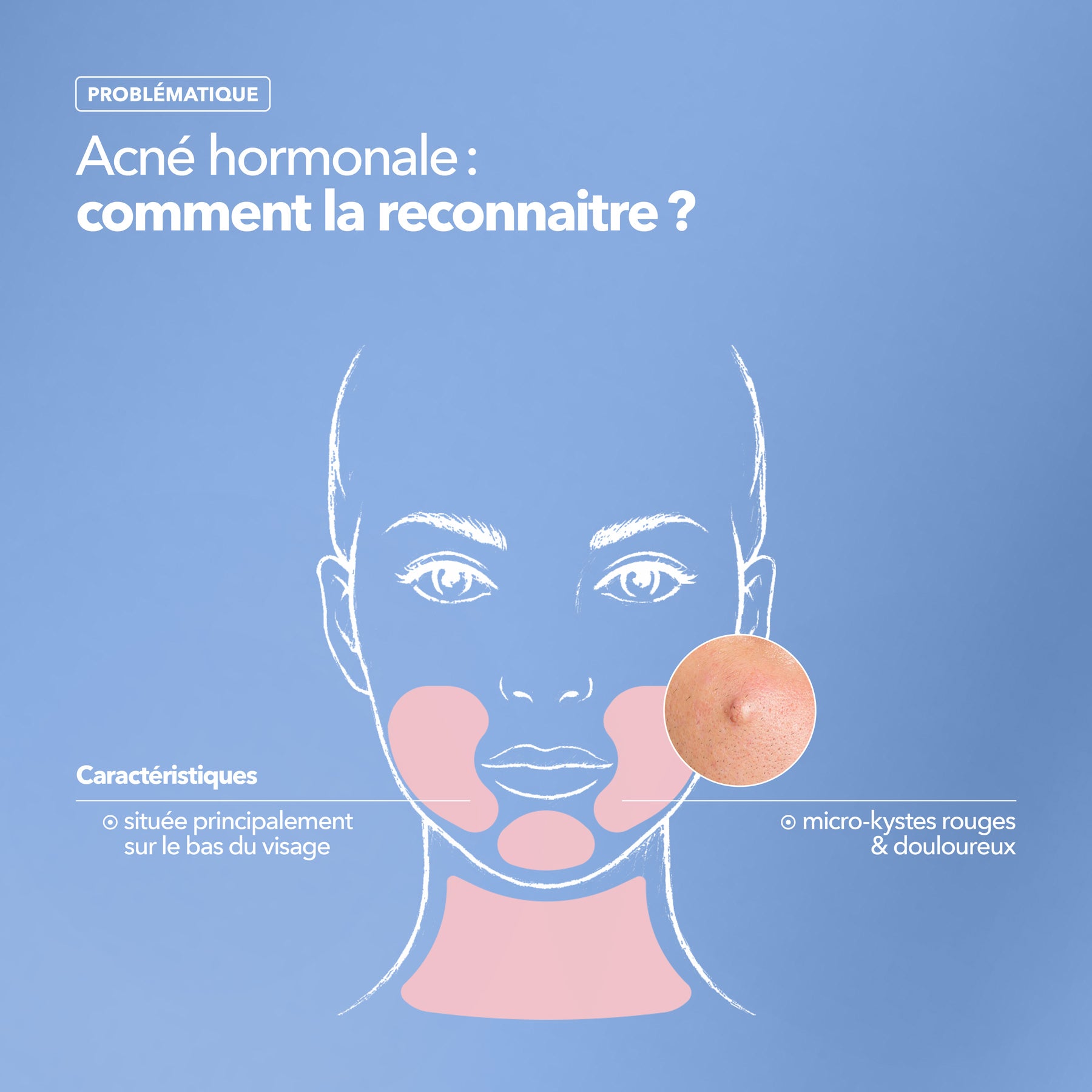 L'acné peut parfois mener la vie dure et ne se limite pas aux années adolescentes. Directement liée à un déséquilibre du microbiome cutané, elle nécessite un soin particulier. Boutons, micro kystes, points noirs... Voici quelques conseils avisés pour retrouver l'éclat d'une peau nette et saine !