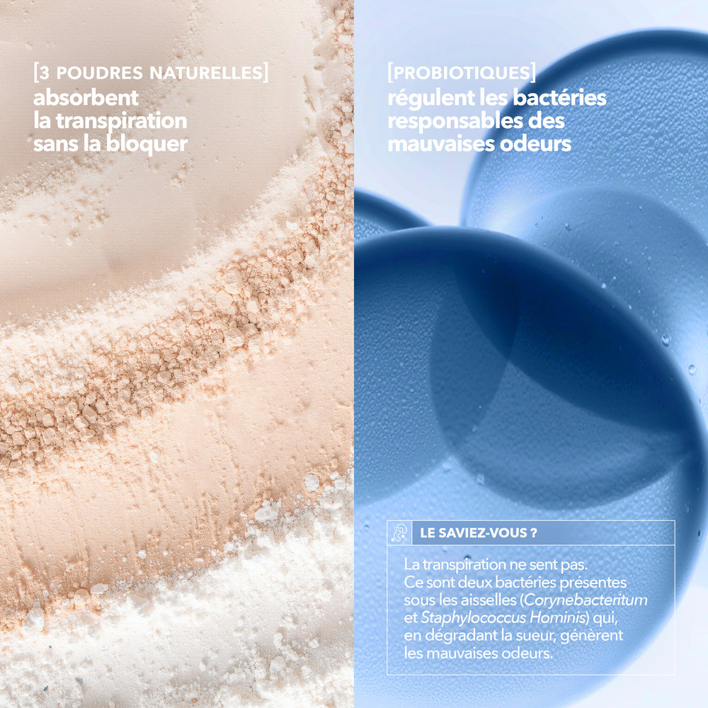 Ce déodorant stick-en-crème a été pensé pour les aisselles sensibles. Sa formule enrichie en ferments probiotiques cible les bactéries responsables des mauvaises odeurs, sans jamais bloquer la transpiration. Il glisse facilement sous les aisselles et laisse un toucher peau douce, sans traces blanches.